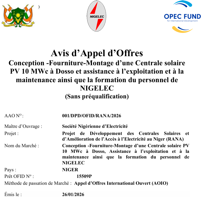 Avis d’appel d’offres pour acquisition de cinq (05) véhicules pour l’antenne locale du projet WAAP Dorsale-Nord au Niger publié